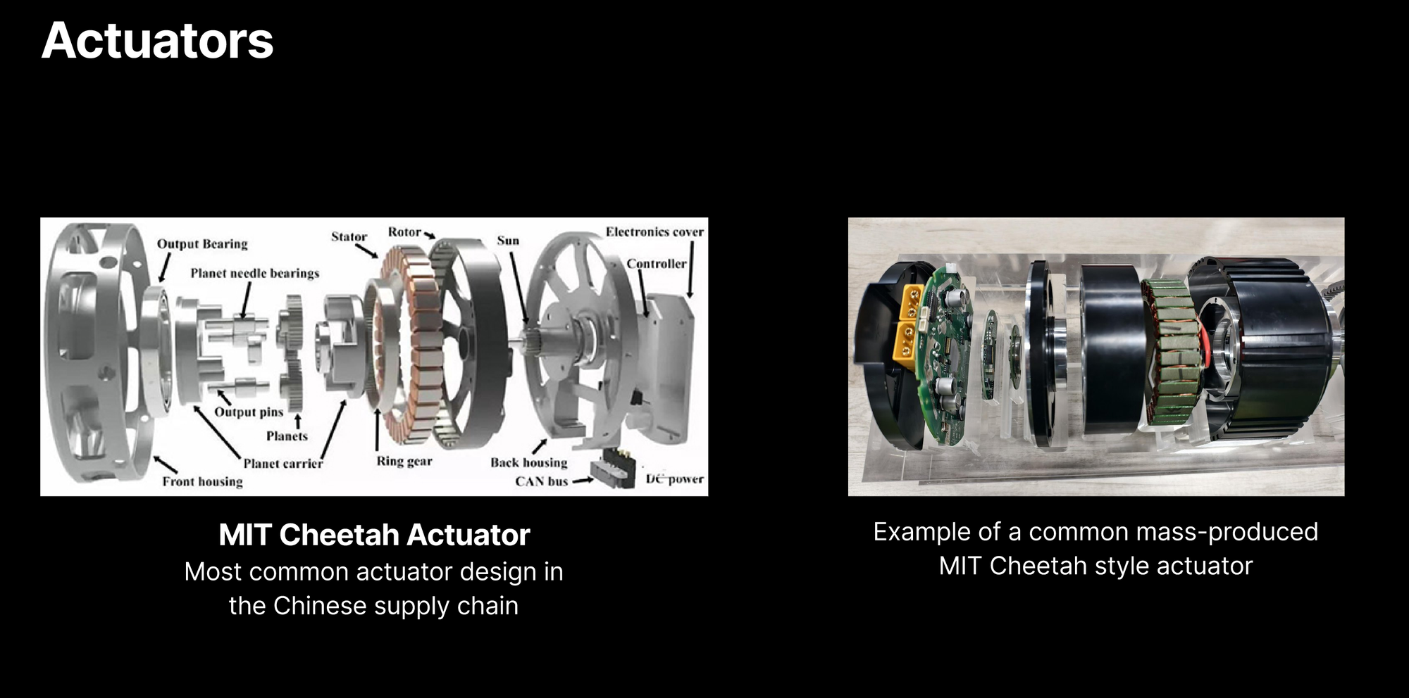 The MIT Cheetah actuator is the open-source design that spawned China’s entire humanoid robotics ecosystem. Unitree’s CEO reverse-engineered Boston Dynamics, couldn’t replicate their actuators, and instead adopted the MIT design. Now dozens of Chinese manufacturers produce variants of it.