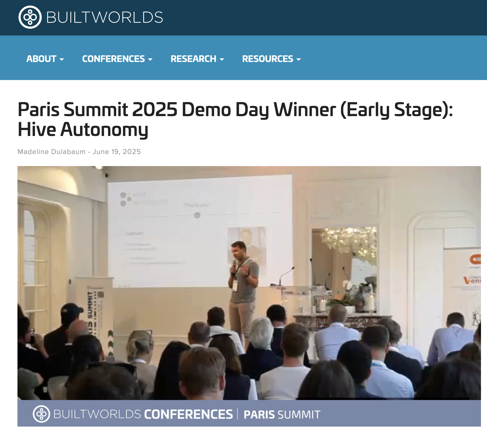 Hive Autonomy Wins Built Worlds 2025 Paris Summit Demo Day Competition