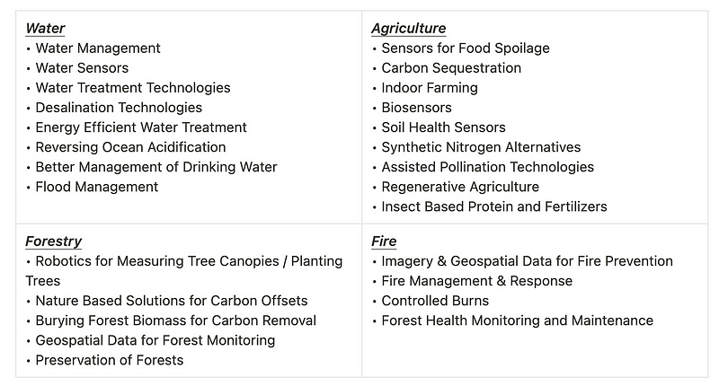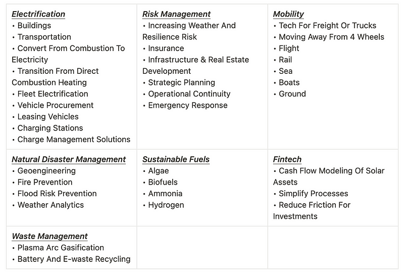 This piece is not meant to serve as an investment thesis, but rather, it’s meant to highlight different pockets in the Climate Economy that we believe are crucial components for decarbonization.