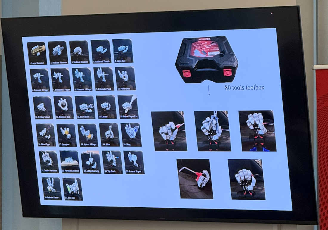 They validated the hand across 27 different grasp taxonomies — the standard classification of human grasp types — and demonstrated it could grasp every tool in an 80-tool toolbox.