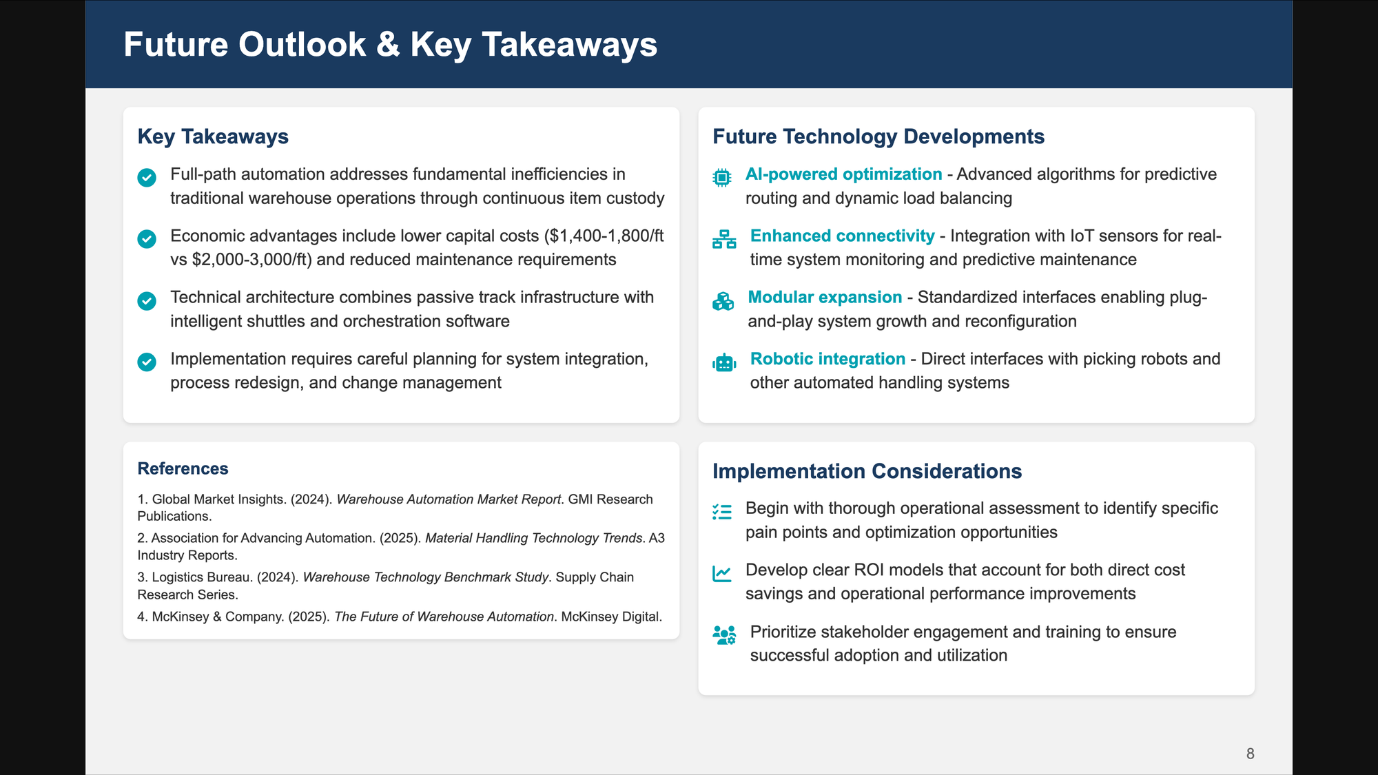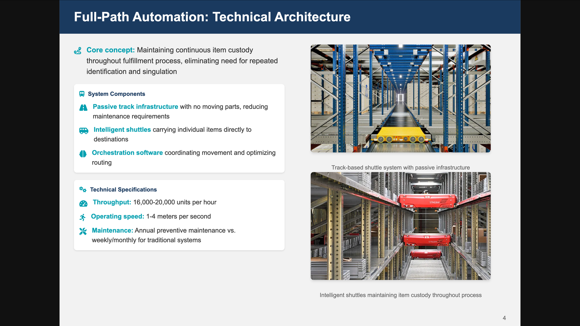 The market dynamics supporting warehouse automation growth, combined with the technical advantages of full-path automation technology, create a compelling foundation for investment consideration. The technology addresses real operational challenges while providing clear economic benefits that can justify investment decisions based on quantifiable returns rather than speculative technology adoption.